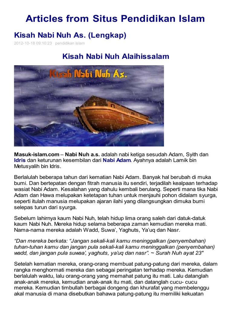 Doc Kisah Nabi Nuh Lengkap Bk Sumbawa Academia Edu