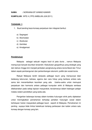 Terusanilmu konsep akomodasi amalgamasi akulturasi asimilasi dan segregasi serta contoh aplikasi konsep tersebut dalam konteks masyarakat malaysia hari ini refleksi. Di malaysia beberapa kes. ETNIK RAS Amalgamasi.